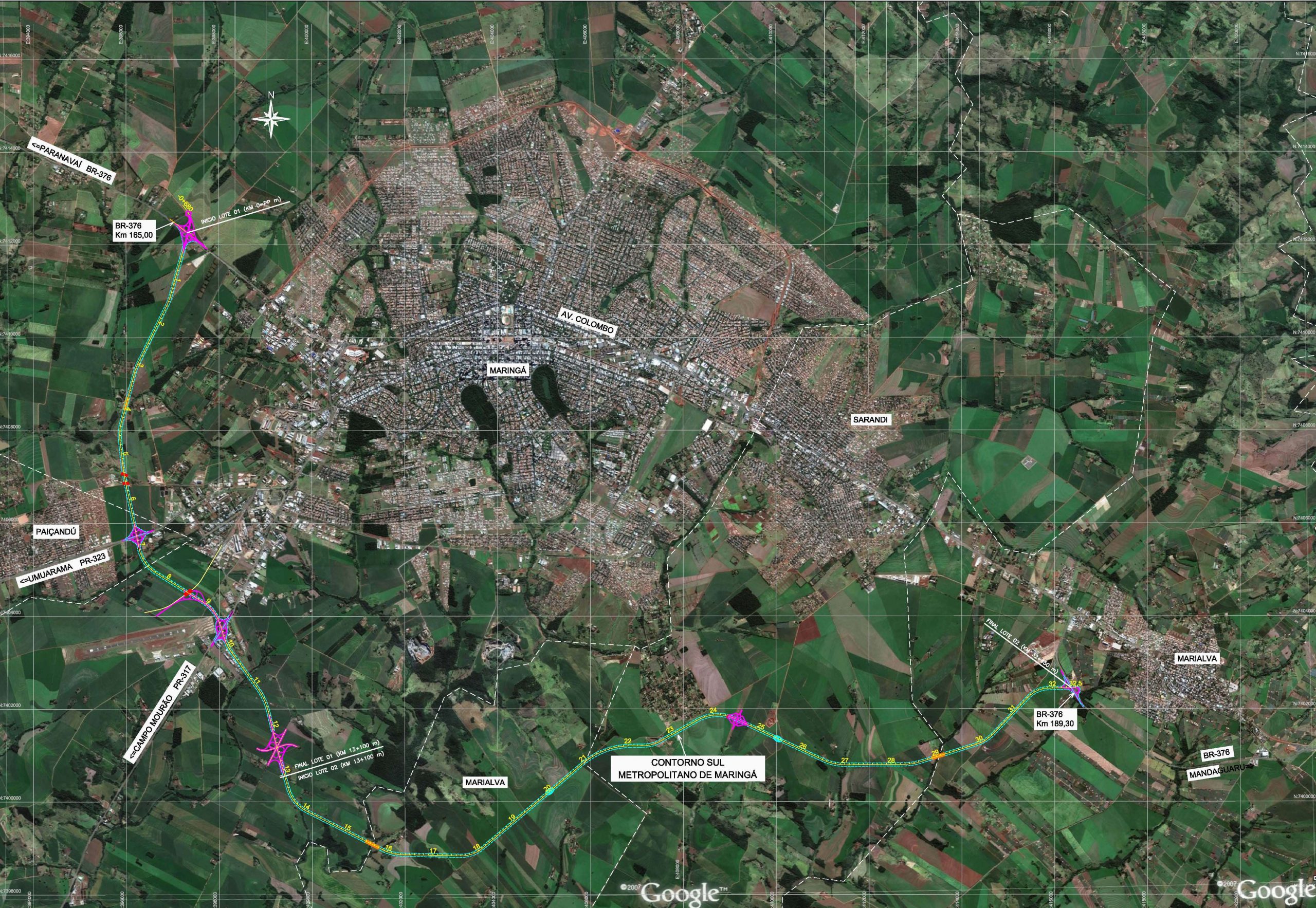 O Contorno Sul será uma rodovia de 32 quilômetros interligando as saídas de Maringá para Paranavaí, para Cianorte e para Campo Mourão. O próprio aeroporto será conectado à nova via.