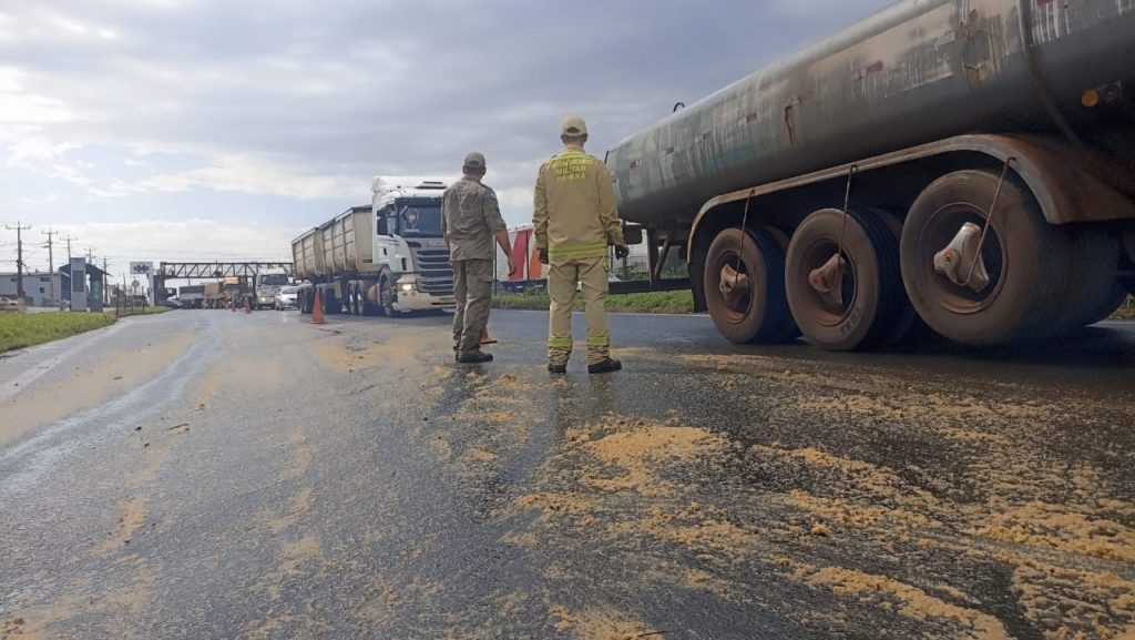 O Corpo de Bombeiros foi chamado e, por segurança, interditou o tráfego em meia pista. O resíduo foi derramado na PR-317, no sentido de Maringá para Paiçandu, próximo ao Shopping Catuaí.