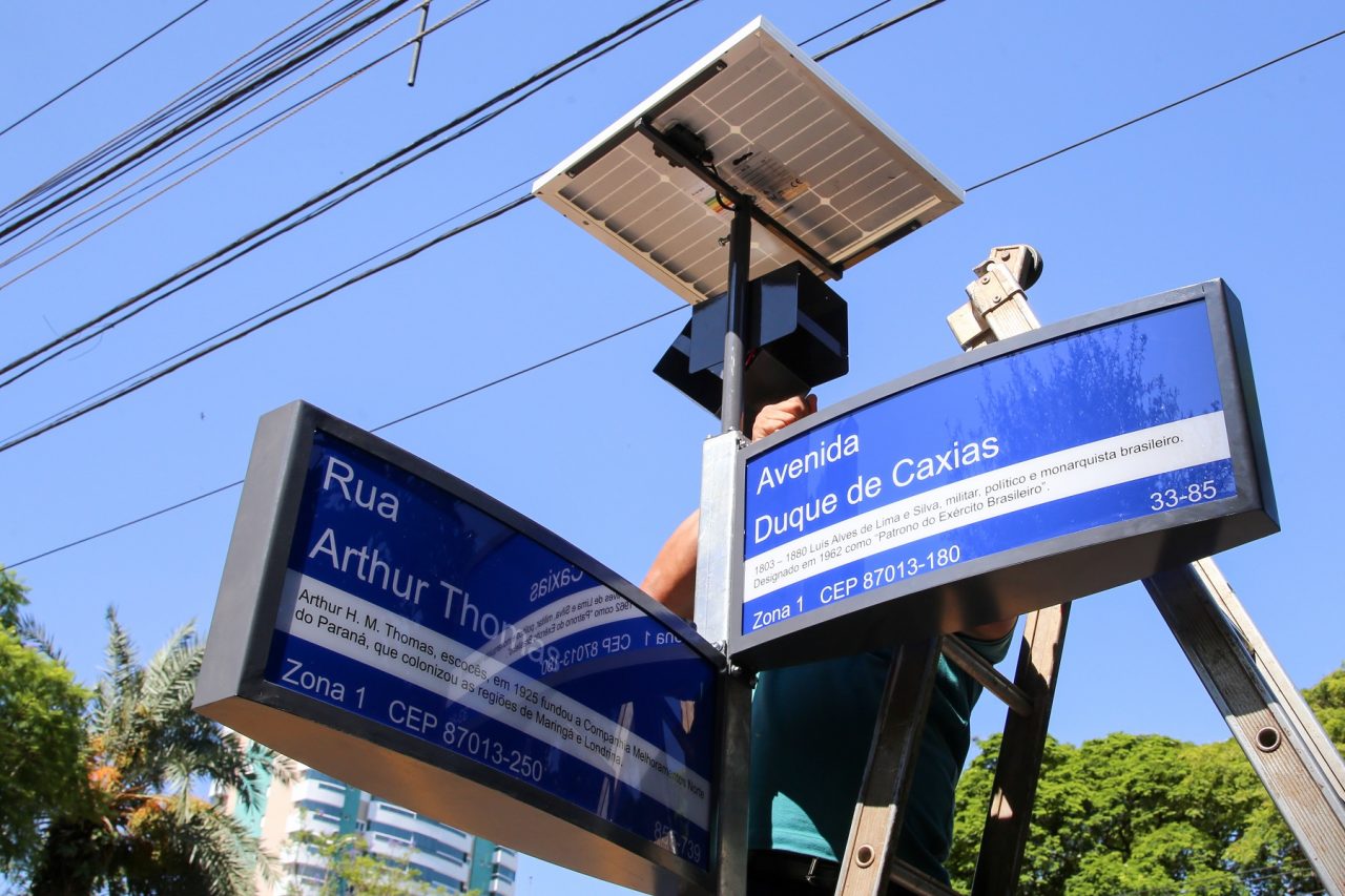 Somente os moradores mais atentos perceberam, mas poucos testaram a real utilidade das placas solares com nomes de ruas instaladas nas principais ruas e avenidas do centro de Maringá. O autônomo Adilson de Jesus Silva achou a placa luminosa mais visível e gostou de saber que nelas é possível também recarregar aparelhos eletrônicos, como celulares.
