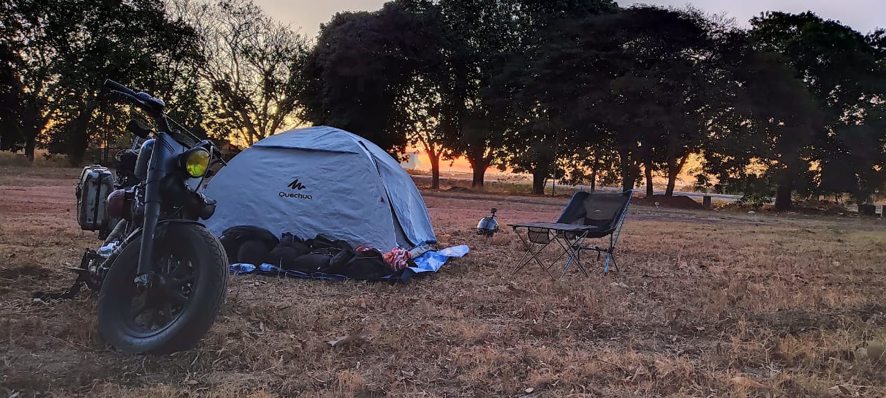 Ele saiu de Maringá na madrugada gelada de uma segunda-feira, e seguiu para São José do Rio Preto (SP). A ansiedade fez com que perdesse as luvas e o fone de ouvido antes mesmo de deixar a cidade. “Passei uma noite na casa de amigos em São José do Rio Preto e depois segui para Minas Gerais. Acampei no triângulo mineiro, em um frio de 2ºC”, conta. No dia seguinte, ele seguiu para Jaraguá, em Goiânia, e enfrentou uma diferença brusca de temperatura: na cidade, a sensação térmica era de 40ºC. Mas o acampamento próximo à BR-153 rendeu um pôr do sol ‘espetacular’. “No quarto dia eu desmontei acampamento às 5h da manhã, fiz um café reforçado e peguei a estrada com destino ao Tocantins”.