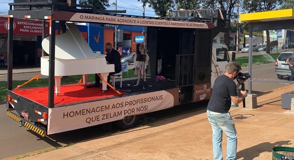 Nesta quinta-feira, 1º, os profissionais de saúde de hospitais de Maringá foram homenageados. Uma apresentação musical, com direito a piano e voz, percorreu os hospitais da cidade para entregar caixas de bombons e cartinhas, com mensagens de carinho aos profissionais.