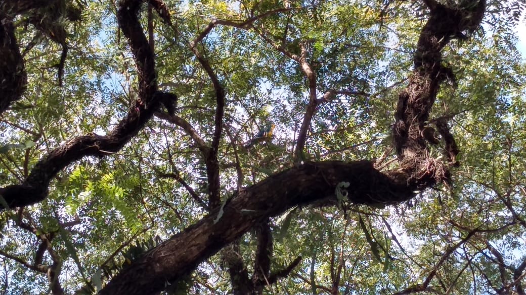 Os Bombeiros de Maringá se mobilizaram para tentar resgatar uma arara-canindé na Rua Santos Dumont, na área central da cidade, na tarde desta quarta-feira, 2. A arara chamada Lola fugiu de casa, na mesma rua, na tarde dessa terça-feira, 1, e ficou na copa de uma árvore.