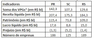 O resultado mais robusto é observado em receita líquida: as companhias do Paraná somaram R$ 207,4 bilhões – valor 12,5% maior que a soma de faturamentos das representantes gaúchas (R$ 184,3 bilhões) e 18,3% maior que a das catarinenses (R$ 175,3 bilhões).