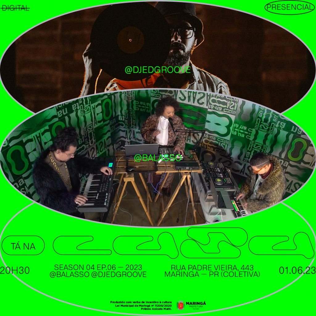A quarta temporada do projeto Tá na Casa realiza mais uma edição na quinta-feira, 1º de junho, às 20h30, na Coletiva Mostra Multicultural, que fica na Rua Padre Vieira, 443. As atrações da noite são o DJ londrinense Ed Groove e o trio maringaense Balasso, que se reúnem para proporcionar uma noite dançante. O projeto é viabilizado pelo Prêmio Aniceto Matti e tem entrada gratuita.