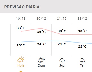 Em Maringá, a previsão é de pancadas de chuva no período da tarde. A precipitação prevista é de 1.3 milímetros. A temperatura mínima deve ser de 24ºC e a máxima pode chegar a 36ºC.
