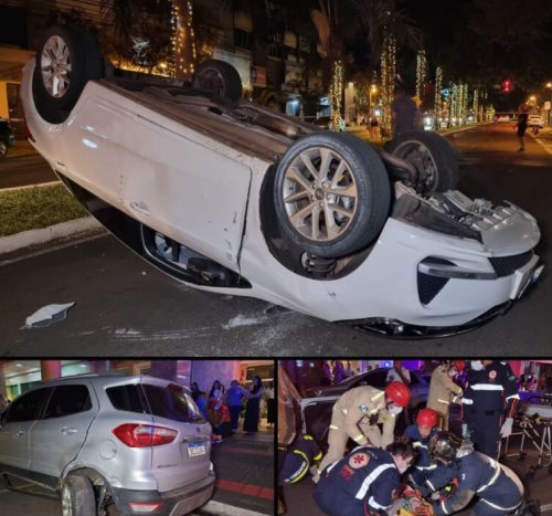 Três mulheres ficam feridas após colisão seguida de capotamento na região central de Maringá