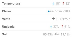 Para hoje, a mínima é de 21ºC, enquanto a máxima chega aos 28ºc, segundo o que prevê o Simepar (Sistema de Tecnologia e Monitoramento Ambiental do Paraná).