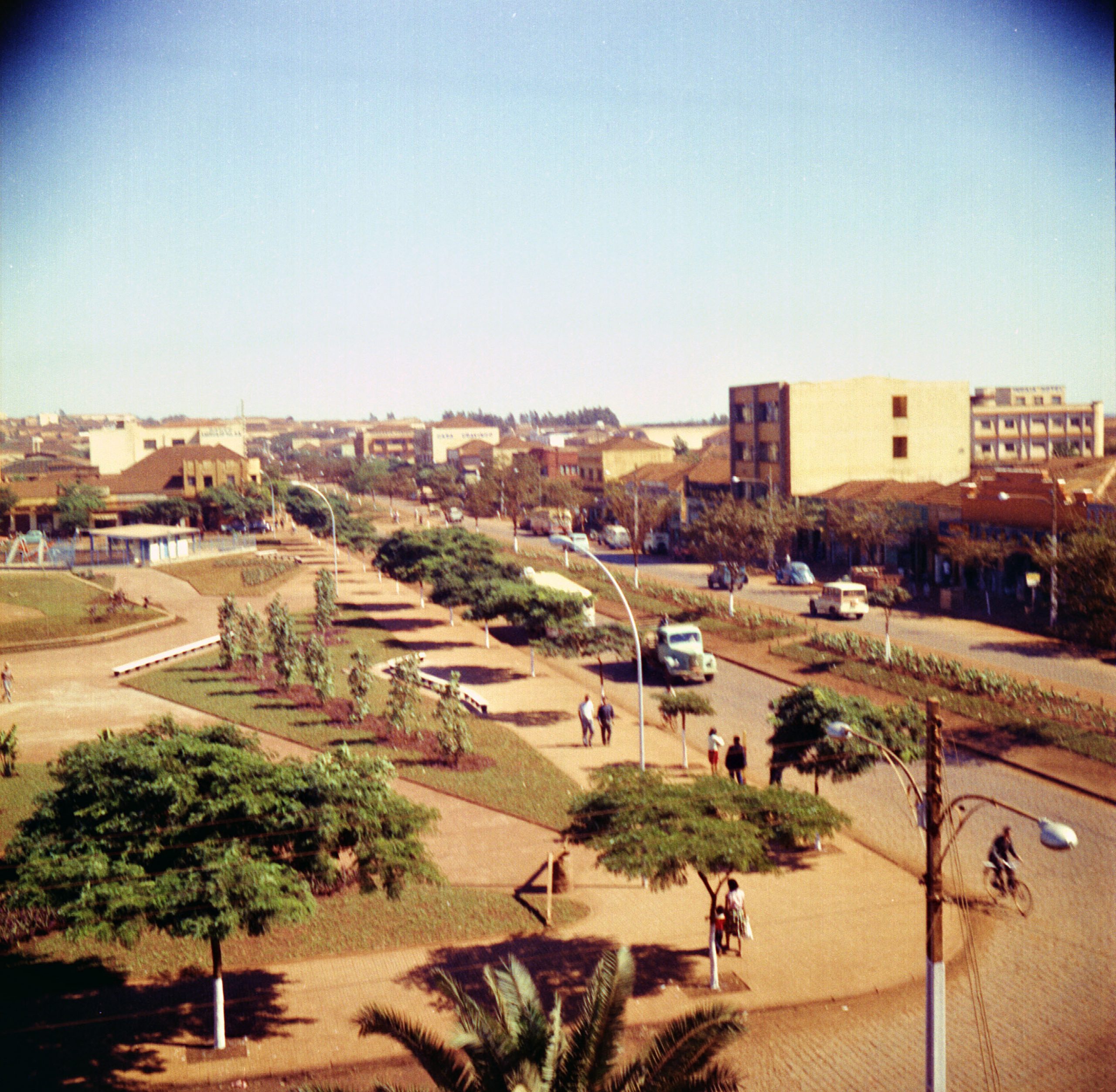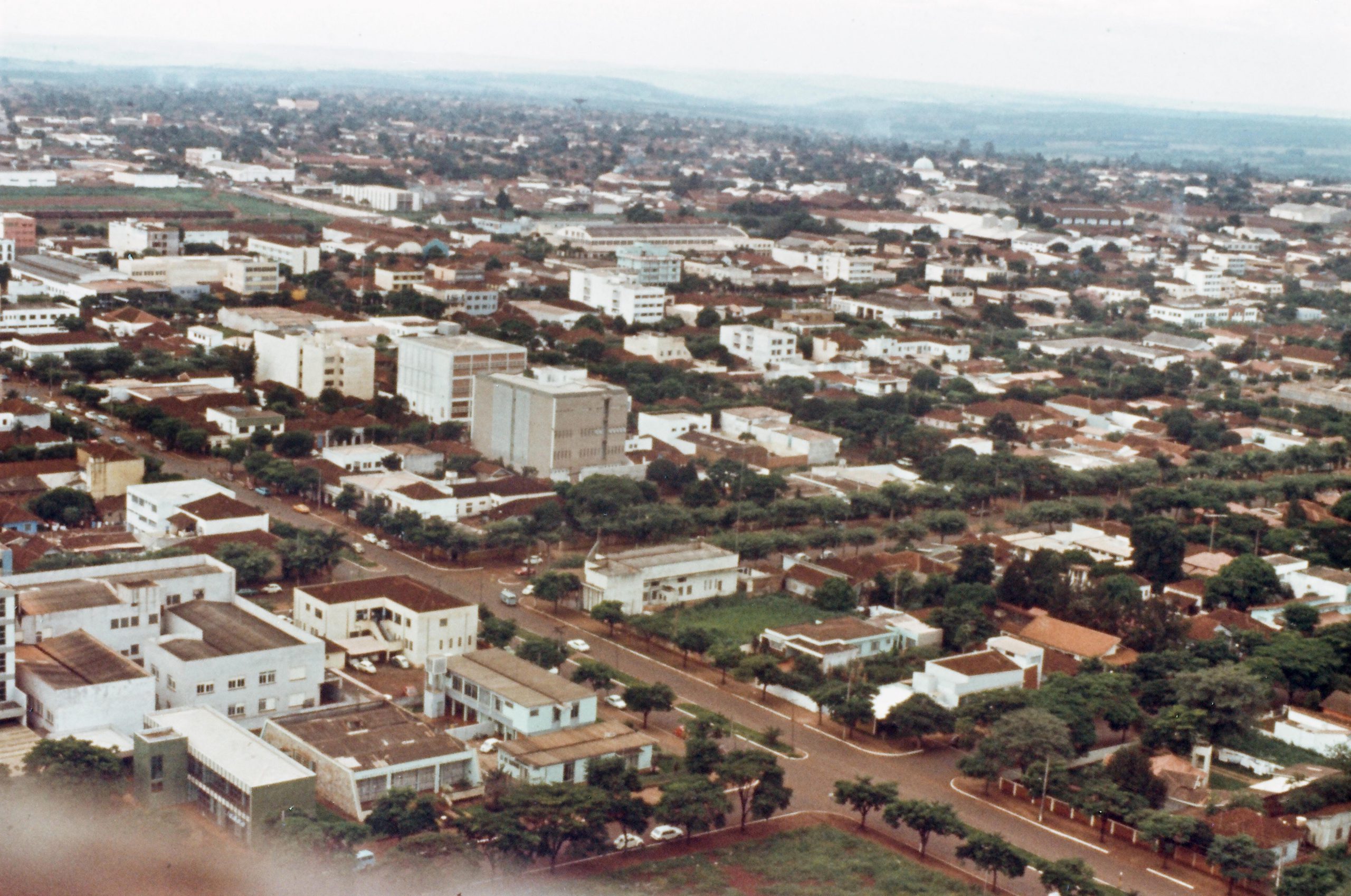 A foto foi tirada a partir de uma das sacadas dos quartos do Palace Hotel, que ficava na avenida Brasil ao lado do Banco Noroeste do Estado de S. Paulo.