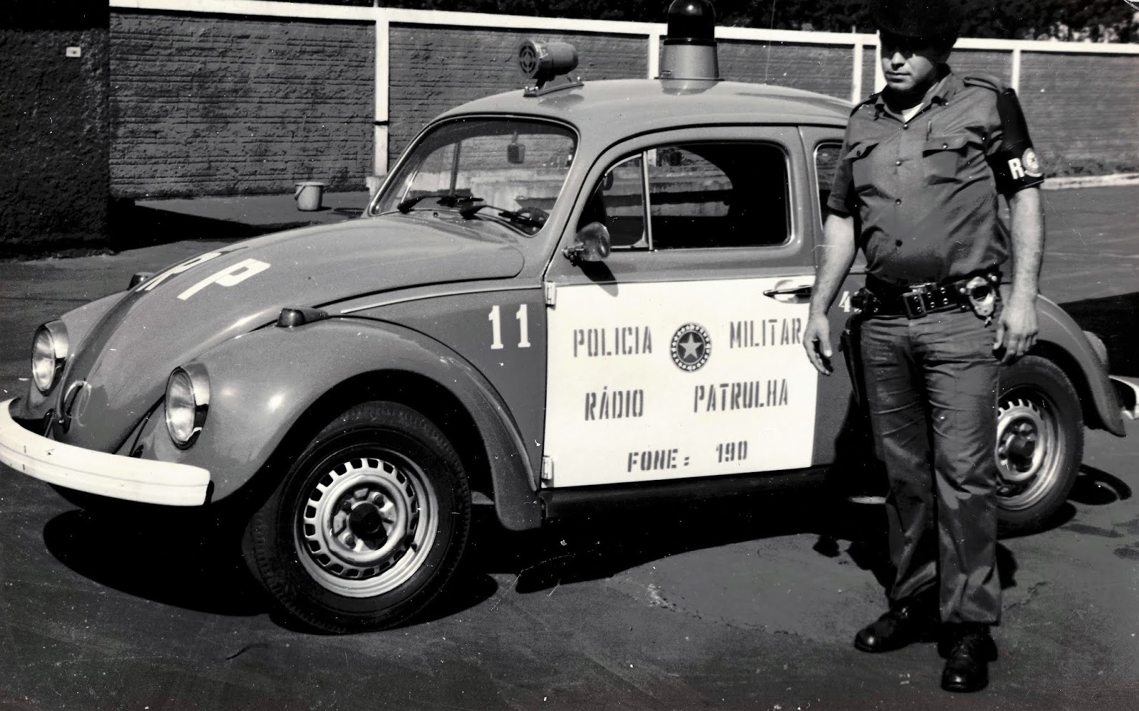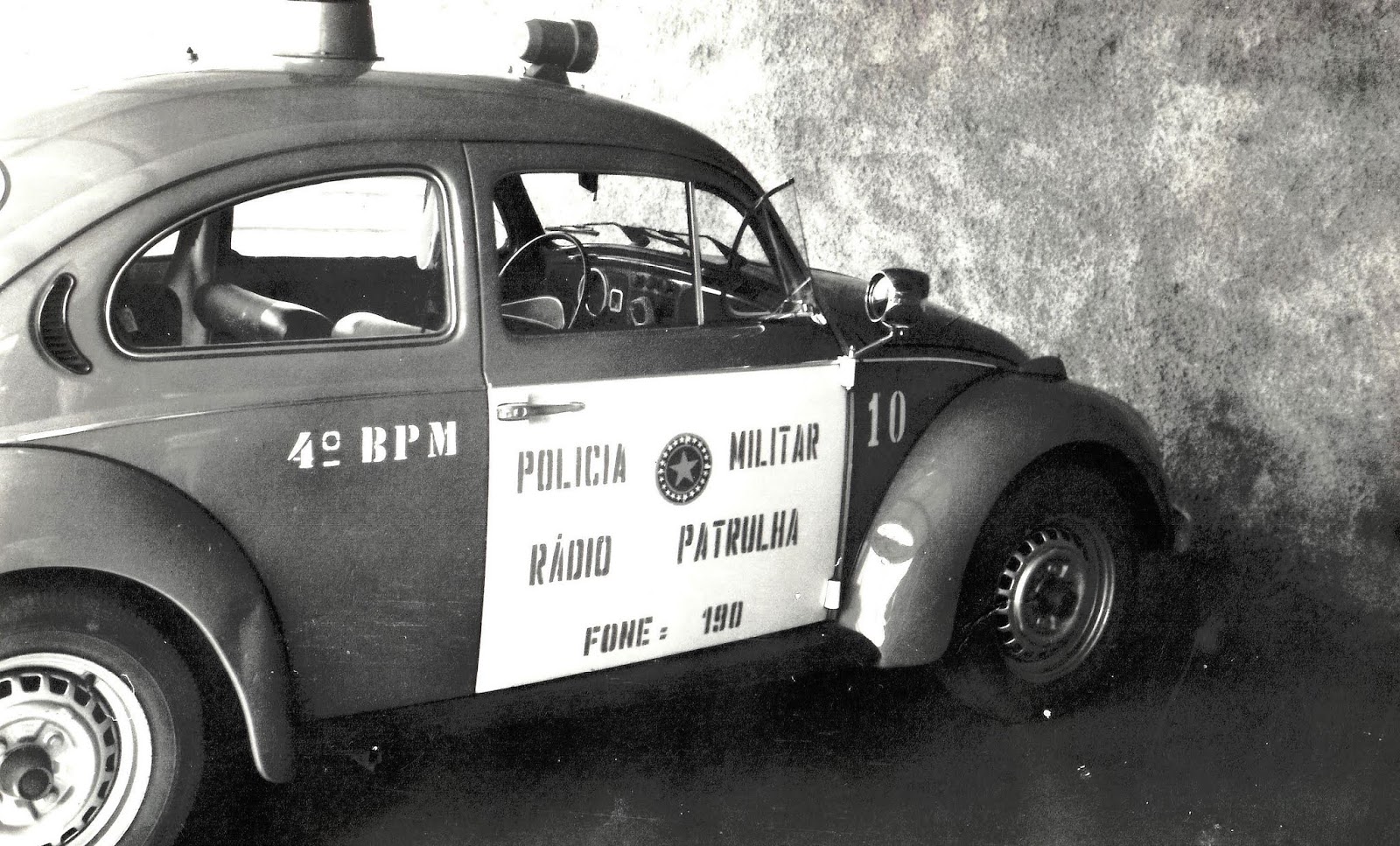 Registros das primeiras viaturas do 4.º Batalhão de Polícia Militar (BPM) em 1974. Em destaque aparece o soldado Domingos.
