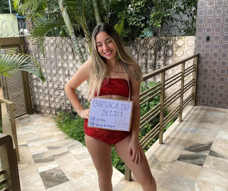 Uma jovem de 22 anos viralizou nas redes sociais após compartilhar uma fantasia inusitada que ela criou para o Carnaval em Belo Horizonte. Raphaela Oliveira se vestiu de “Barraca do Beijo” e cobrou R$ 1 pelo selinho e R$ 5 pelo beijo de língua.