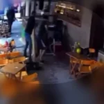 Após ser atendido, Santana também deixou o local, mas acabou encontrando o agressor na saída do evento. Imagens que circulam em redes sociais mostram quando o agressor chama a vítima, que estava saindo, de costas para ele. Quando o engenheiro se vira, o outro dá um soco violento em seu queixo.