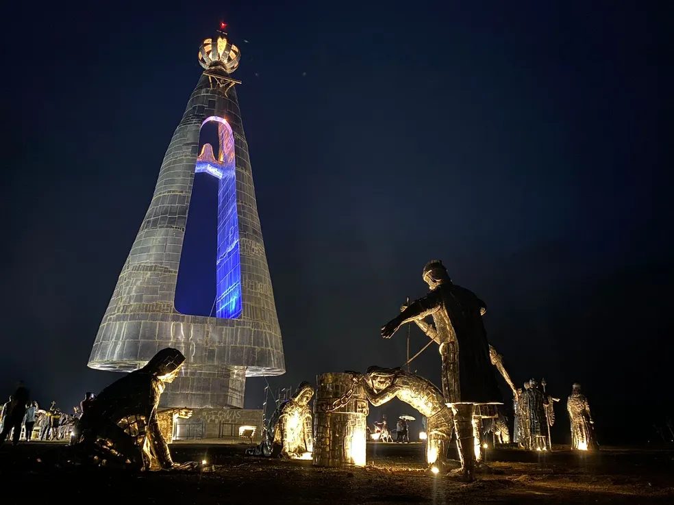 Além da estátua, foi inaugurada a exposição O Caminho, a vida pública de Jesus Cristo. São 50 obras entre três e sete metros de altura distribuídas em 16 cenas.