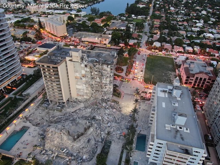 Uma autoridade dos bombeiros informou que 35 pessoas foram resgatadas do edifício em Surfside, um enclave à beira-mar com 5.700 moradores, em uma ilha-barreira na Baía de Biscayne, perto de Miami. Duas pessoas foram resgatadas dos escombros, enquanto as equipes de resgate utilizam drones e cães farejadores na busca por sobreviventes.
