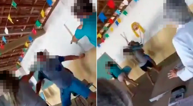 Ao fundo, mesmo diante do quebra-quebra, com cadeiras voando, é possível ouvir uma pessoa dizendo tranquilamente que é necessário acionar a guarda municipal da cidade. Também não se sabe se a corporação ou a Polícia Militar foram acionadas.