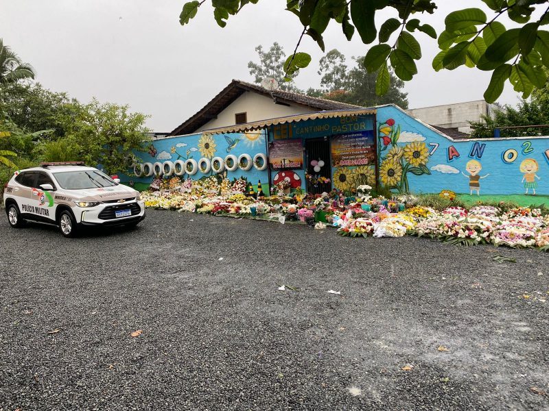 Nem a chuva contínua que cai em Blumenau, Santa Catarina, nesta sexta-feira, 7, cessou as homenagens às quatro crianças assassinadas no ataque* à creche Cantinho Bom Pastor. Cerca de 250 motoboys, além de alguns motoristas com carros, se concentraram no centro da cidade e seguiram para a escola.