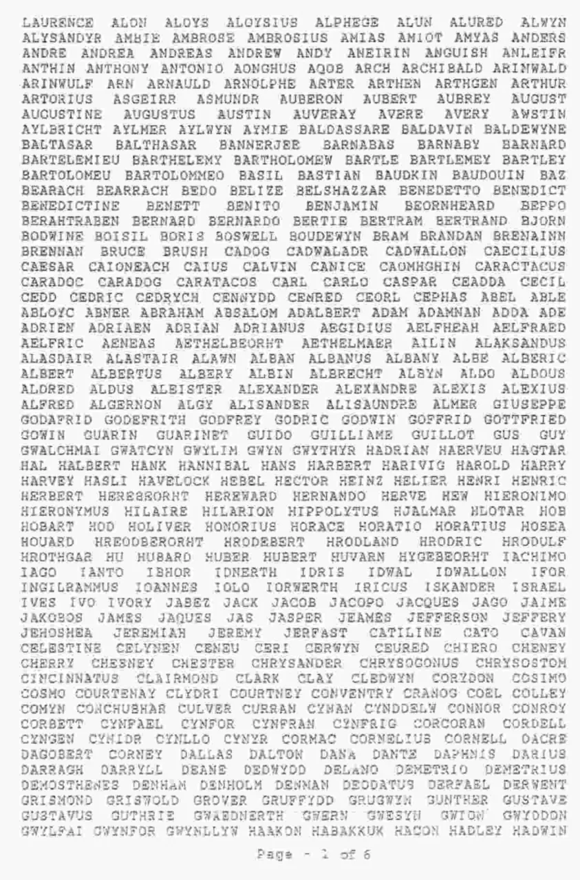 Bibliotecário, Laurence escolhia seus nomes enquanto folheava livros durante o expediente. “Meu nome favorito é AZ2000, o que significa que tenho nomes do Arizona e tenho 2000 nomes.”