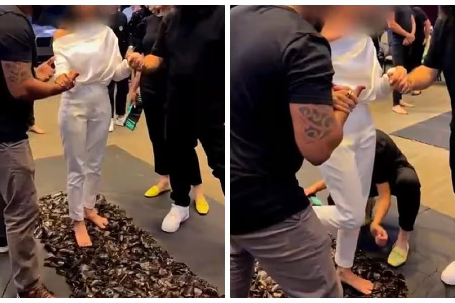 “Eu, como líder, inclusive, fui o primeiro a fazer essa dinâmica. Eu já fiz algumas vezes. Na realidade, quando você pisa naquela camada toda de cacos de vidro, o seu peso se distribui e eles não furam o pé de ninguém”, diz o empresário no vídeo. “Quando você termina essa prática, você vê que nada de mal aconteceu, você não se machucou em nenhum momento e muito pelo contrário, aquele medo que você tinha, você venceu”, completa.