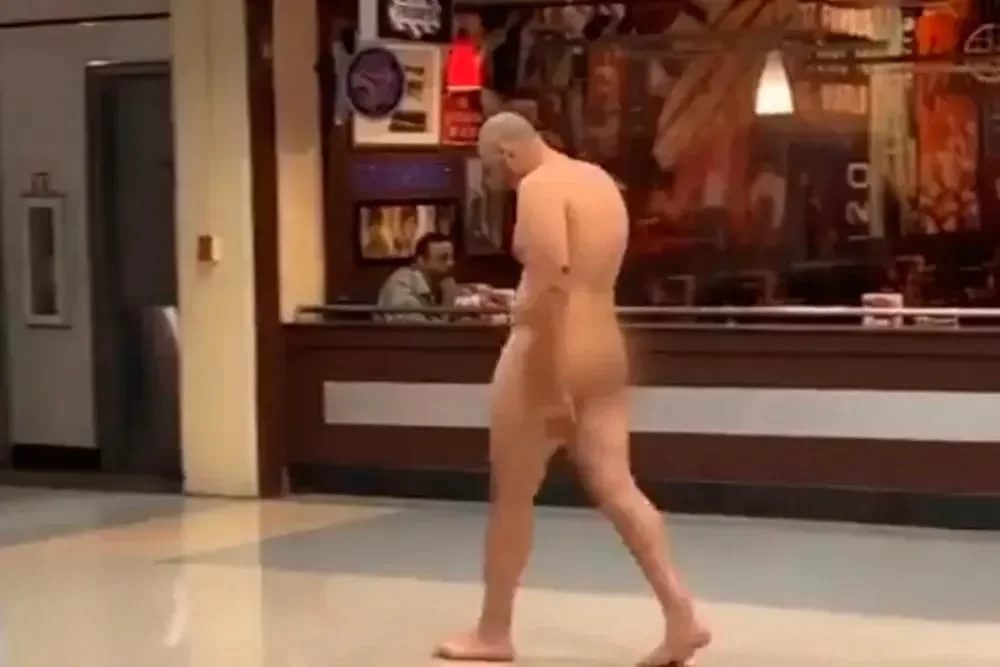 Durante a gravação, é possível ouvir outro homem dizendo que “há um cara nu no aeroporto”, enquanto alguém pede para que ele não grave o “espetáculo”.