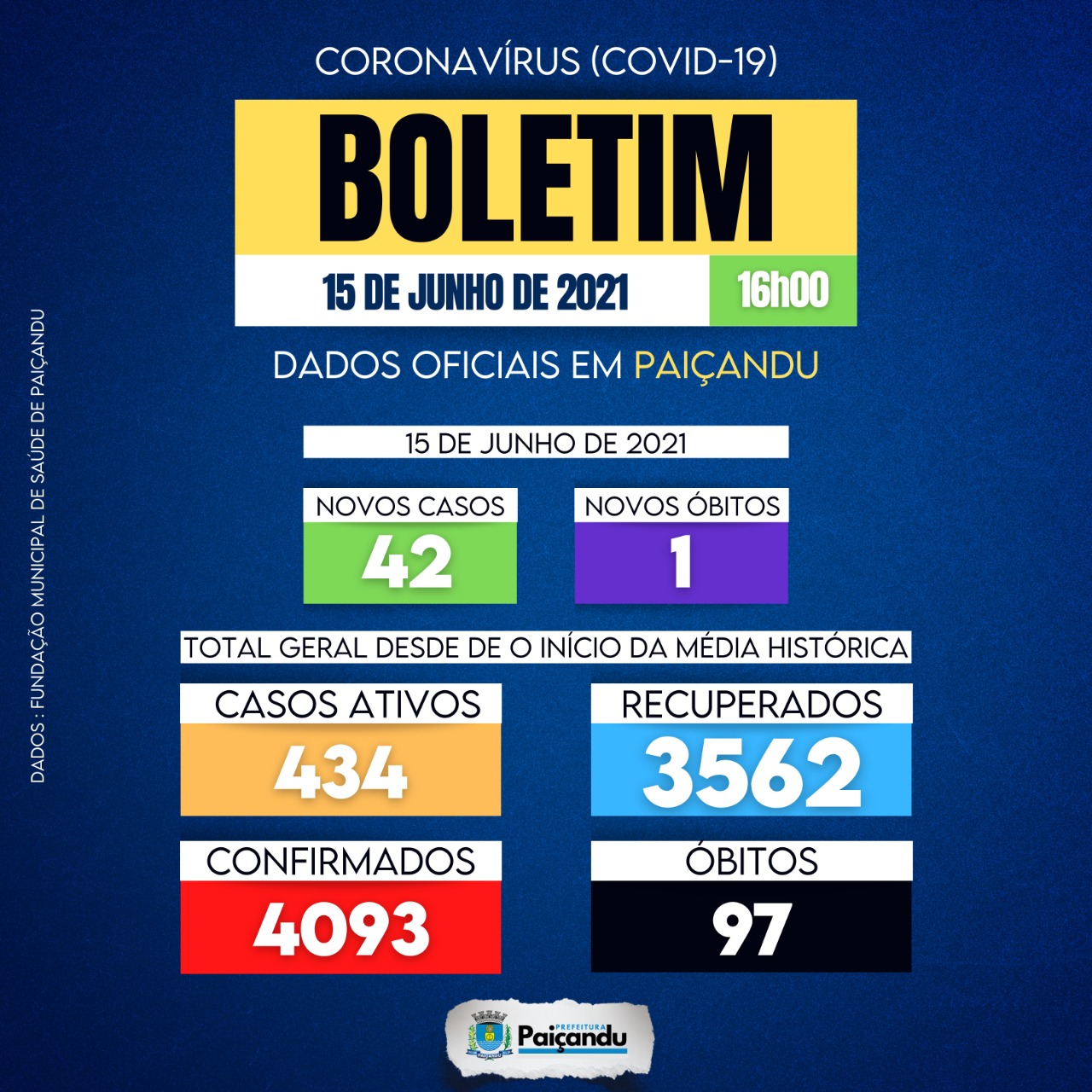 Atualmente, Paiçandu possui 434 casos ativos de Covid-19. Desde o início da pandemia, a cidade teve 4.093 casos confirmados, com 3.562 recuperados e 97 óbitos. Confira o boletim completo: