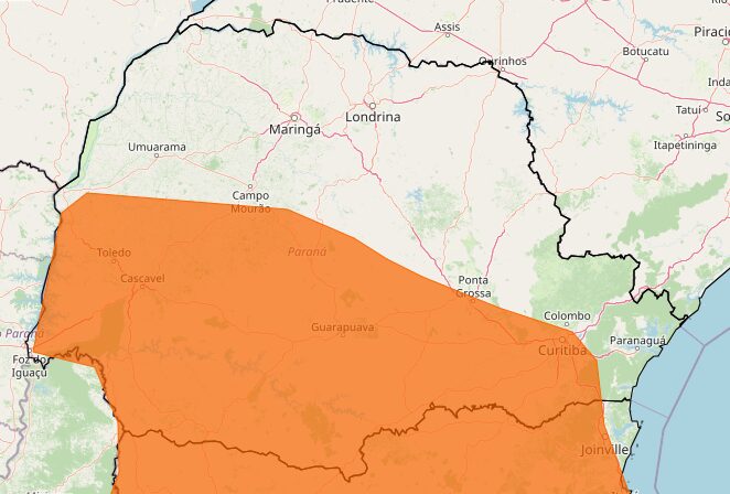 O Instituto Nacional de Meteorologia (Inmet) emitiu um alerta climático para queda nas temperaturas no Paraná, de categoria laranja de perigo. A previsão indica que o frio se concentra principalmente na metade sul do estado, de acordo com o Sistema de Tecnologia e Monitoramento Ambiental do Paraná (Simepar). Nesta semana, algumas cidades do Paraná devem amanhecer com temperaturas próximas ou abaixo de 0°C.