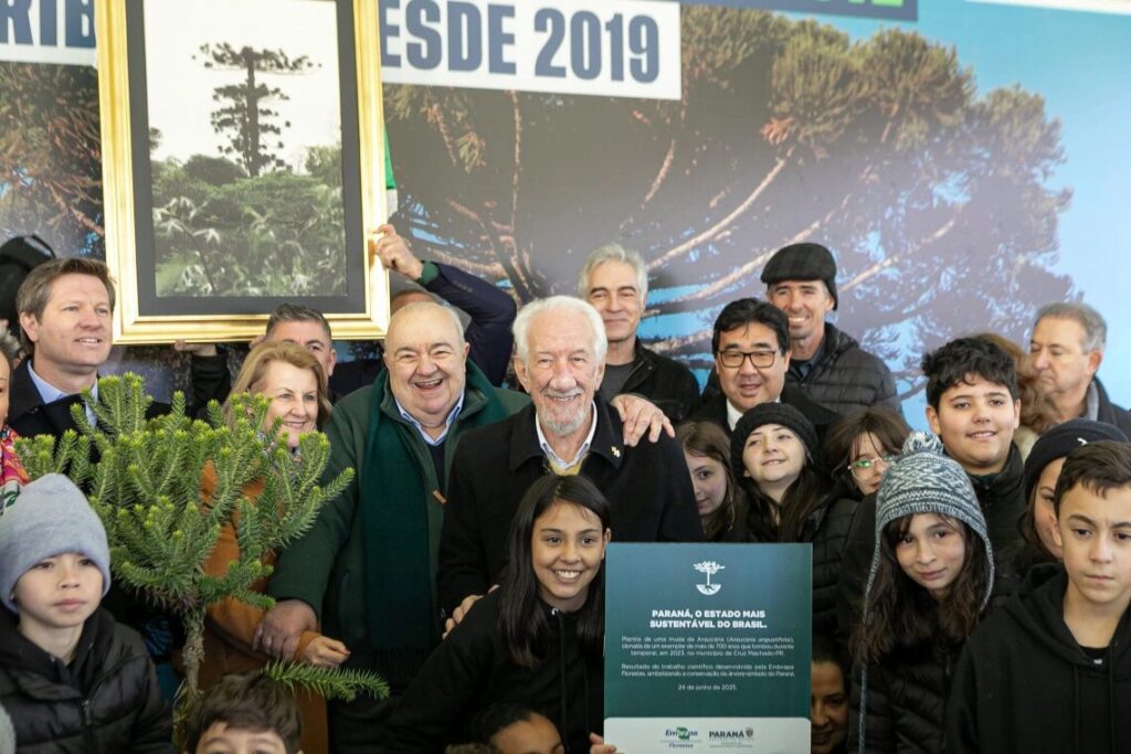 “A ressurreição dessa árvore, no Dia da Araucária, demonstra que o bioma da araucária nunca vai acabar no Paraná. A árvore caiu em novembro de 2023, mas ela geminou aproximadamente no ano de 1.300”, destacou o secretário estadual do Desenvolvimento Sustentável, Rafael Greca. “Ela foi recomposta geneticamente pela Embrapa e vai ficar aqui, no Palácio Iguaçu, como símbolo da permanência da araucária na paisagem do Paraná e na alma paranista”.