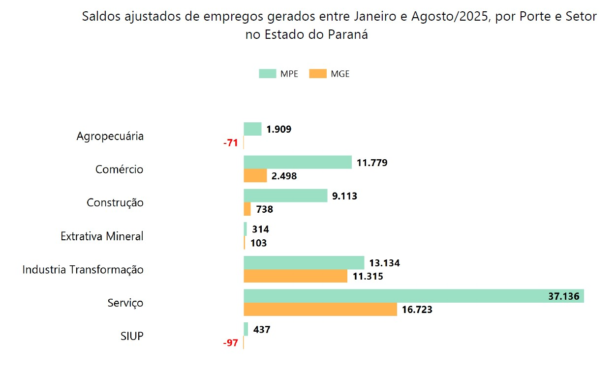 Nos oito primeiros meses do ano, o setor de Serviços ficou na liderança com 37.136 contratações; seguido por 13.134 de Indústria Transformação; e 11.779 de Comércio. O cenário se repetiu em agosto, quando foram criadas 4.029 vagas nos Serviços, no Paraná.
