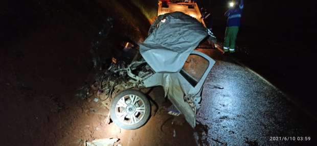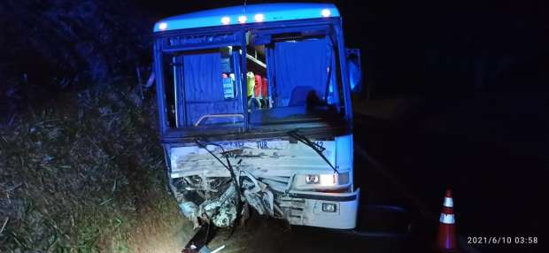 Segundo informado à reportagem, o acidente deixou duas vítimas fatais na batida frontal com ônibus na rodovia.