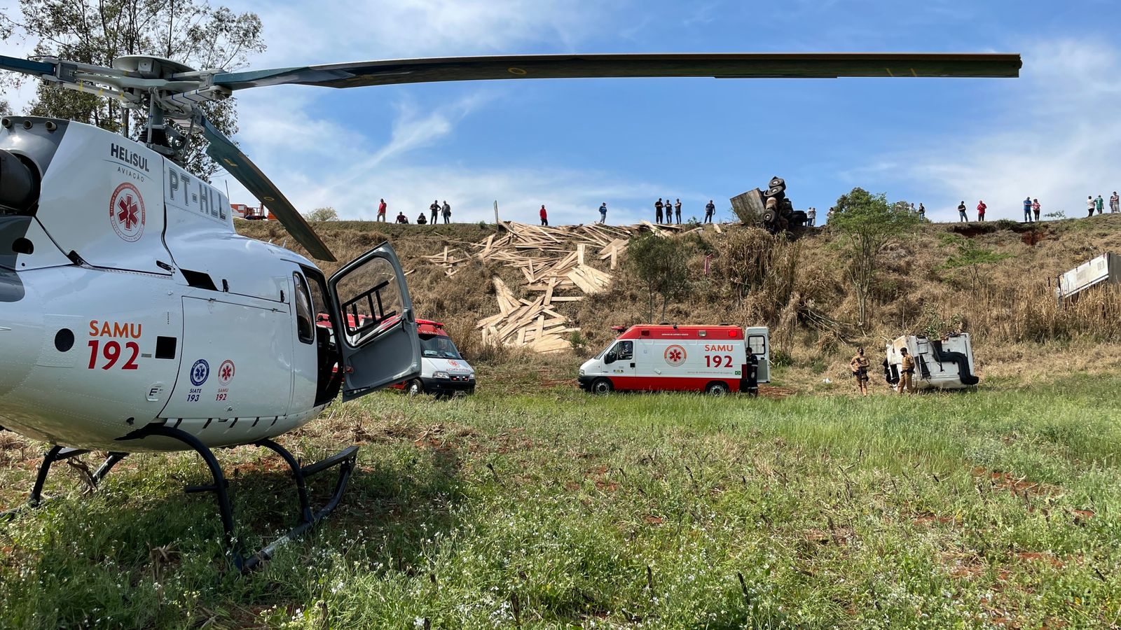 O motorista foi ejetado para fora da cabine. Ele ficou gravemente ferido e foi socorrido por equipes do Samu que foram para o local em ambulâncias e de helicóptero, que decolou de Maringá para o local. A vítima foi entubada, colocada na aeronave, e encaminhada para o Hospital Norte Paranaense (Honpar), de Arapongas, nesta tarde. O motorista do outro caminhão não se feriu.