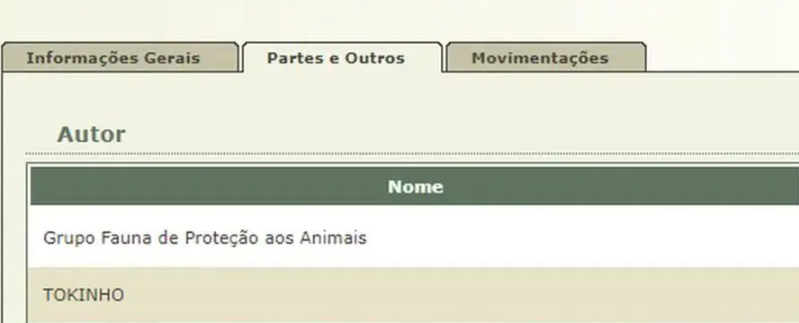 A ONG entrou no final de setembro com um pedido de indenização por dano moral contra o suspeito, citando “Tokinho” como autor. A juíza Poliana Maria Cremasco Fagundes Cunha Wojciechowski aceitou o animal como parte legal do processo. Agora, o cão consta oficialmente como autor do processo no sistema do Tribunal de Justiça do Paraná (TJ-PR).