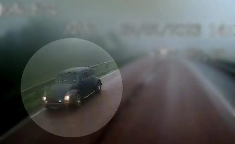 A Polícia Civil soube depois das imagens, produzidas pela câmera de um caminhão que trafegava pela BR-277. O vídeo mostra, primeiro, o Fusca azul escuro passando pelo caminhão, na direção correta. Pouco tempo depois, o Fusca reaparece, mas dessa vez na contramão.