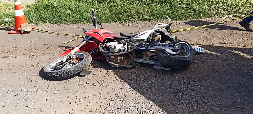O casal, que estava em uma motocicleta, acabou sendo atingido na traseira por uma caminhonete. O motorista do utilitário abandonou o veículo e fugiu do local.