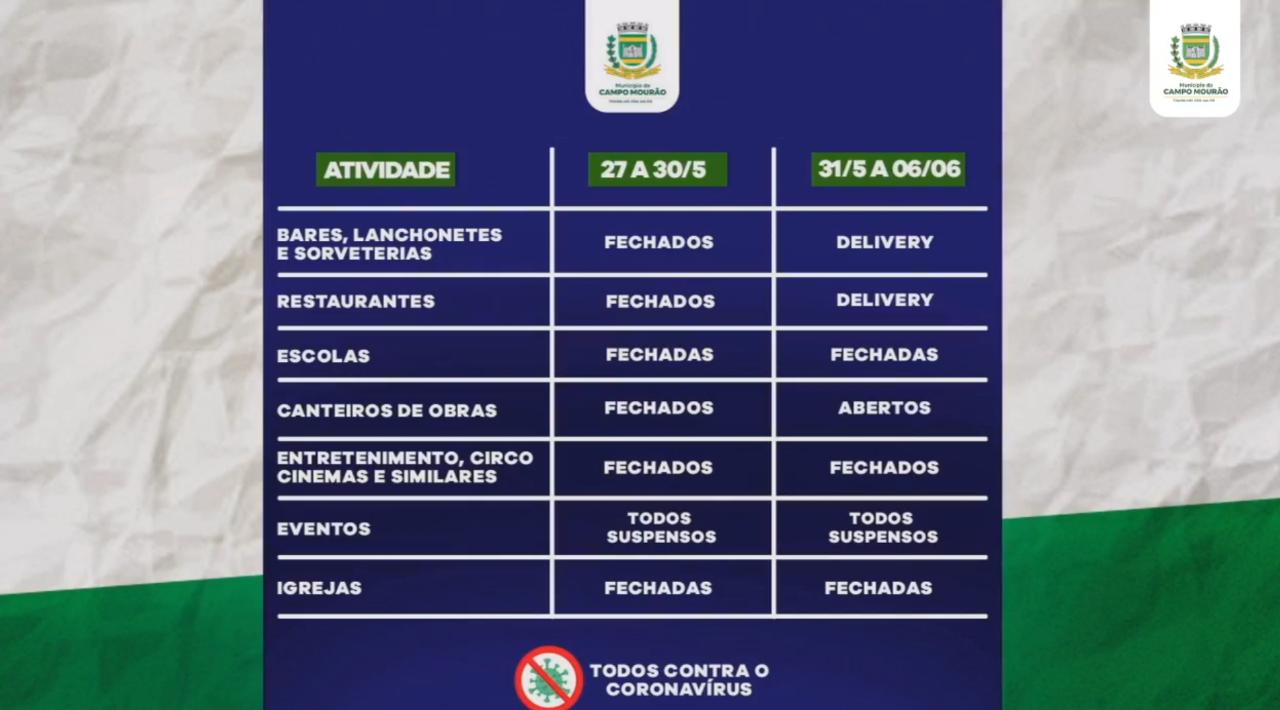 A administração municipal de Campo Mourão vai decretar lockdown de 27 a 30 de maio por conta da situação de colapso total no sistema de saúde em razão da Covid-19. O município chegou neste domingo, 23, a 200 mortos pela doença, o número de casos positivos não para de subir e tanto os hospitais quanto a UPA não tem mais onde colocar pacientes. As informações são da assessoria de imprensa da Prefeitura de Campo Mourão.
