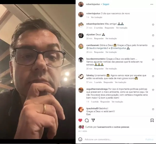 Roberto Justus contou também que, no momento em que a montanha deslizou e o veículo virou, eles quebraram o vidro do carro e saíram correndo pela pista, até que foram socorridos por um funcionário da concessionária Arteris Litoral Sul (ALS), que faz a gestão da via. “Estamos em choque. Neste momento, a gente só pensa nas pessoas que ficaram lá”, destacou.