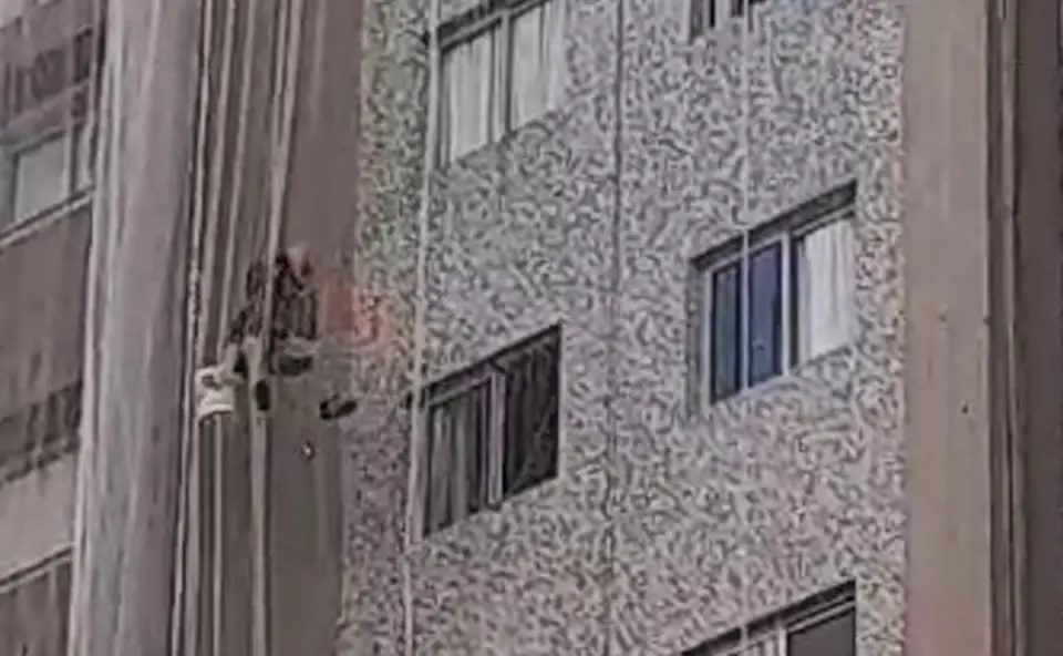Diarista escorrega de janela e é resgatada por trabalhador que limpava fachada de prédio no PR; vídeo
