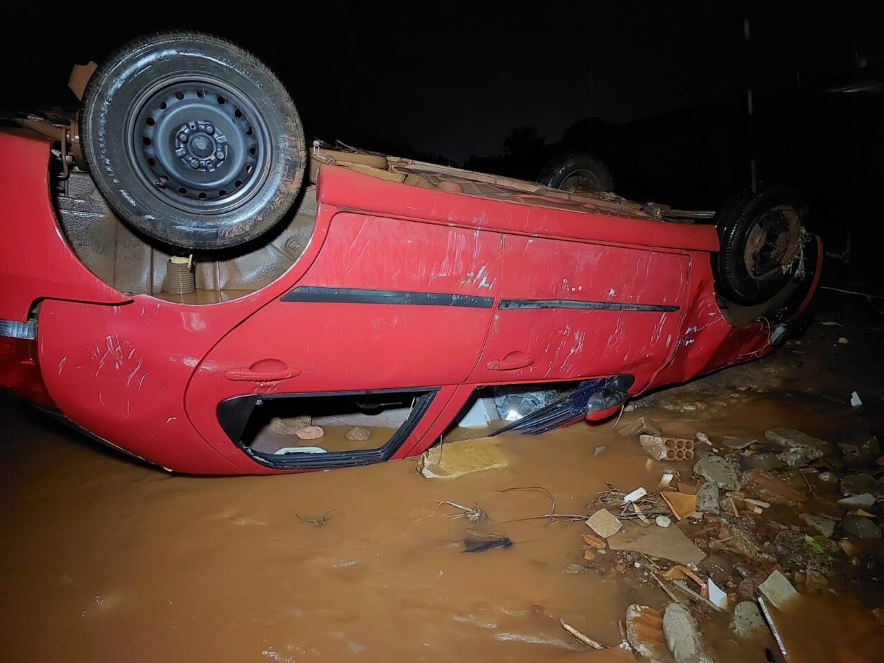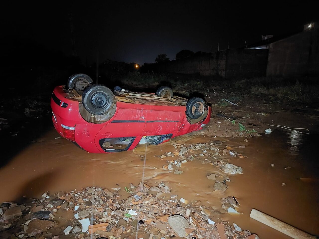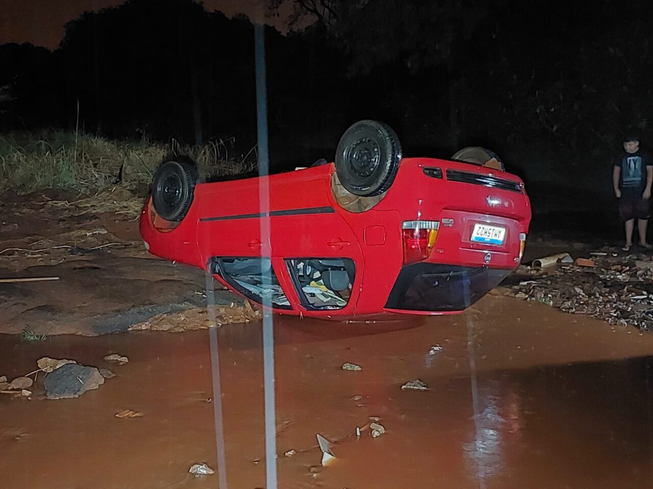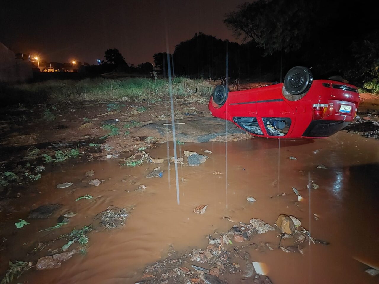 Na noite desta quinta-feira, 11, o caminhoneiro de profissão voltava do mercado com o filho quando começou a chover forte. O carro dele foi arrastado e tombado com a força da enxurrada, no final da Avenida Marangoni, em um trecho sem asfalto no Jardim Itália, em Sarandi.