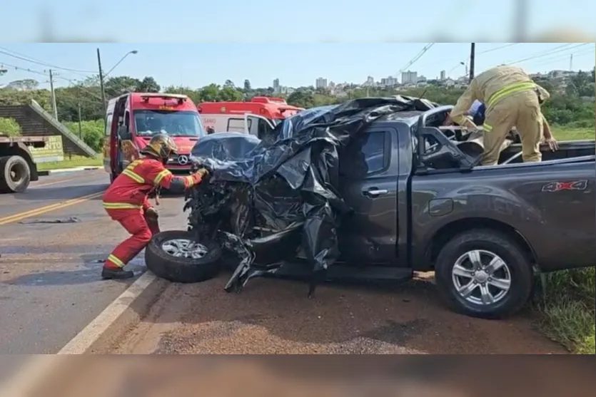 Homem morre após bater caminhonete de frente contra carreta na PR-487