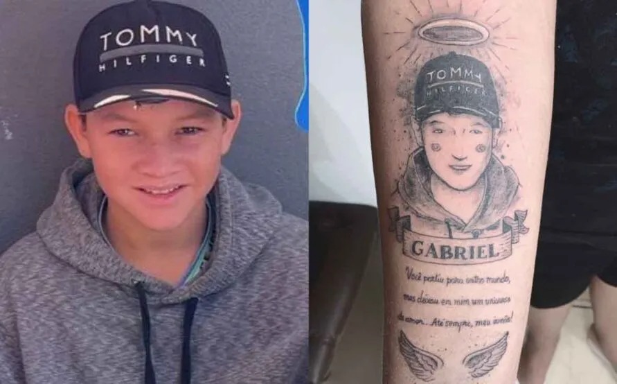 O menino Gabriel Roberto dos Santos Alves, de 12 anos, que morreu em 21 de dezembro, após ser atingido por escombros de um muro em São João do Ivaí, foi homenageado pelo irmão Gustavo, através de uma tatuagem. As informações são do TN Online.