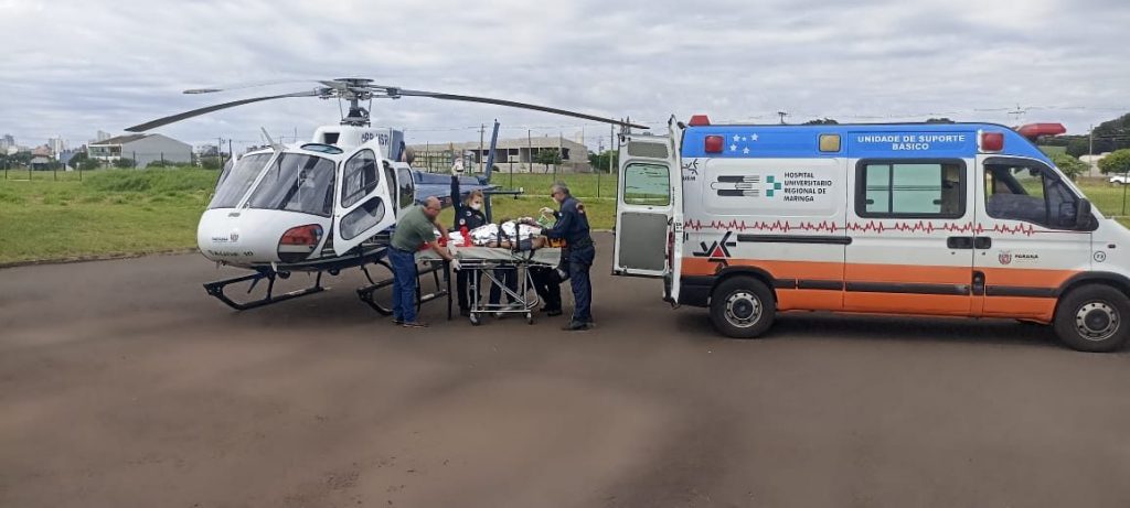 O homem, de aproximadamente 50 anos, recebeu os primeiros atendimentos da equipe do Samu de Astorga. Na sequência, ele foi encaminhado de helicóptero ao Hospital Universitário (HU) de Maringá.