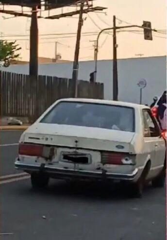 O transporte de animais vivos em veículos de passeio é proibido por lei. O vídeo mostra que esse não é o único problema do Corcel. O porta-malas do carro também está amarrado por um arame ou fio no para-choque, conforme mostram as imagens.