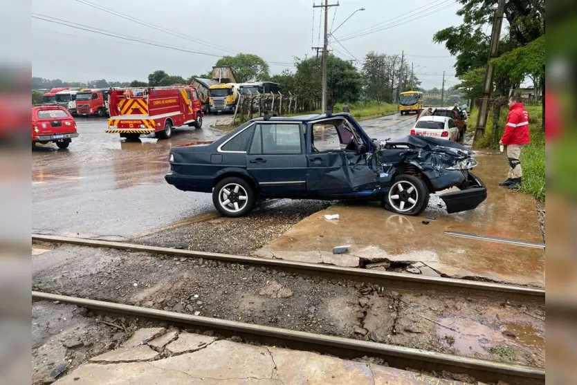 O auto de linha é uma pequena composição ferroviária utilizada para inspeção e manutenção pela Rumo. Um VW Santana foi cruzar a linha férrea naquele ponto, quando acabou atingido pelo veículo ferroviário de serviço da Rumo.