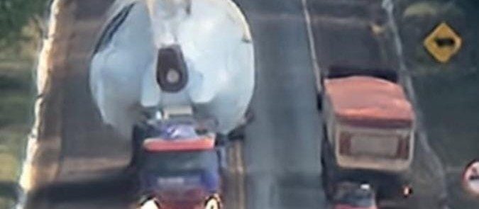 O transporte da peça gigante mobilizou a PRF na BR-376. Foto: Divulgação/PRF