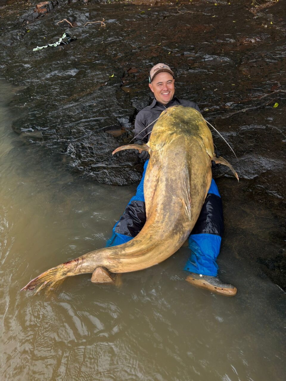 Após a captura, medição e registros fotográficos, o jaú foi devolvido ao rio. Por sorte, a pesca aconteceu fora da piracema, período em que a pesca de espécies nativas fica proibida.