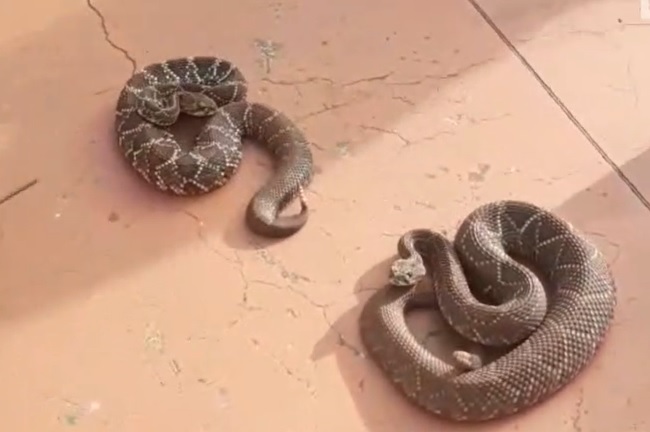 Duas cobras cascavéis foram capturadas na Travessa Luiz Martins na Vila Reis em Apucarana na tarde de terça-feira, 27.