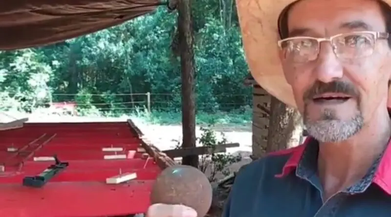 Após retirar o objeto, o levou até o barracão de ferramentas. E lá, utilizou uma esmerilhadeira, comprovando ser feito de aço. José é um sujeito simples. Um agricultor raiz. Um verdadeiro homem do campo. Ele acredita se tratar de uma bala de canhão. “Contam os mais antigos que aqui, o exército brasileiro de agrupou na época da Guerra do Paraguai. Então a bala pode ter sido usada em treinamentos, sendo acertada no pinheiro. E ficou alojada ali. Até que eu a descobrisse”, disse.