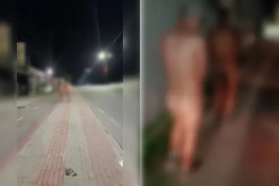 Sem dinheiro para pagar a conta, dois homens foram expulsos de uma boate em Colombo, na Região Metropolitana de Curitiba. Nas imagens, que ganharam as redes sociais neste sábado, 19, os ‘peladões’ saem andando pela Rodovia da Uva e tentam tampar o que podem.