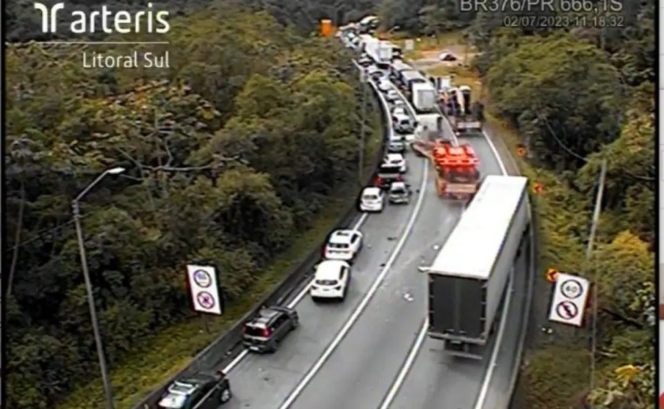 Um vídeo divulgado pela Concessionária Arteris Litoral Sul, que administra o trecho da BR-376 entre o Paraná e Santa Catarina, mostra o momento em que uma carreta desgovernada atinge vários carros e caminhões na rodovia, no fim da manhã deste domingo, 2, em Guaratuba, no litoral. Segundo a Polícia Rodoviária Federal (PRF), 15 veículos foram envolvidos no acidente e seis pessoas ficaram feridas.