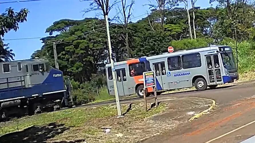 Por pouco, uma tragédia não foi registrada na manhã deste sábado, 22, em Apucarana, norte do Paraná. Um motorista da Viação Apucarana Ltda. (VAL) cruzou a linha férrea poucos segundos antes de uma locomotiva passar, colocando em risco os passageiros. O fato foi registrado em um cruzamento na Rua Marcílio Dias, próximo ao Colégio Agrícola Manoel Ribas, no bairro Michel Soni. A empresa que cuida do transporte público da cidade informou que já afastou o motorista.