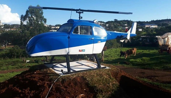 No Paraná, homem constrói ‘helicóptero’ com Fusca abandonado