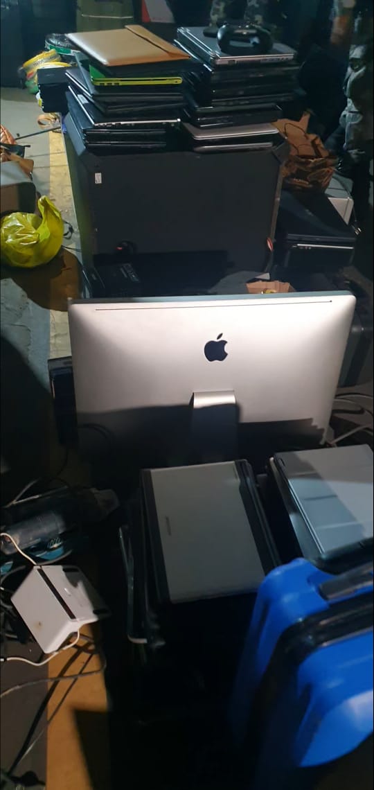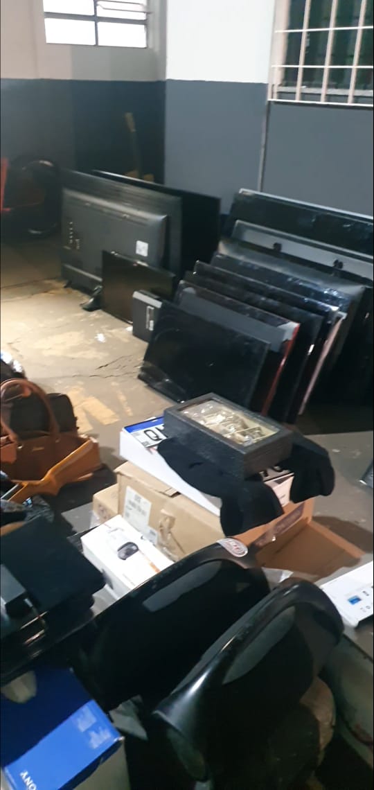 No local, os policiais se surpreenderam com a grande quantidade de objetos furtados e sem procedência. Foram encontrados um carro, uma pistola, uma espingarda, carregadores, munições, coletes balísticos, simulacros, aparelhos de som, ferramentas, jóais, relógios, perfumes, bicicleta, fios de energia, quatro tabletes, 11 videogames, 10 celulares, 21 bolsas femininas, 48 televisores e 52 notebooks.