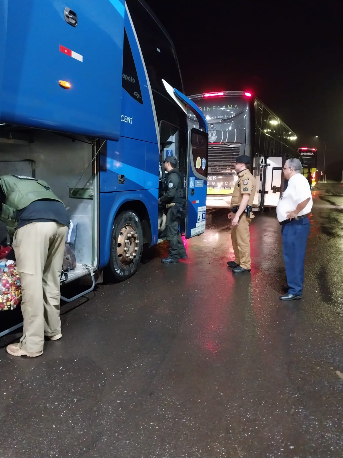 Em um deles, os policias prenderam um homem com mandado de prisão em aberto expedido pela Justiça. Em outro veículo, foi localizado e detido um homem com 10 kg de maconha. A droga estava em uma mala em meio a roupas. Ele informou que pegou a droga em Paranavaí e levaria até São Paulo.